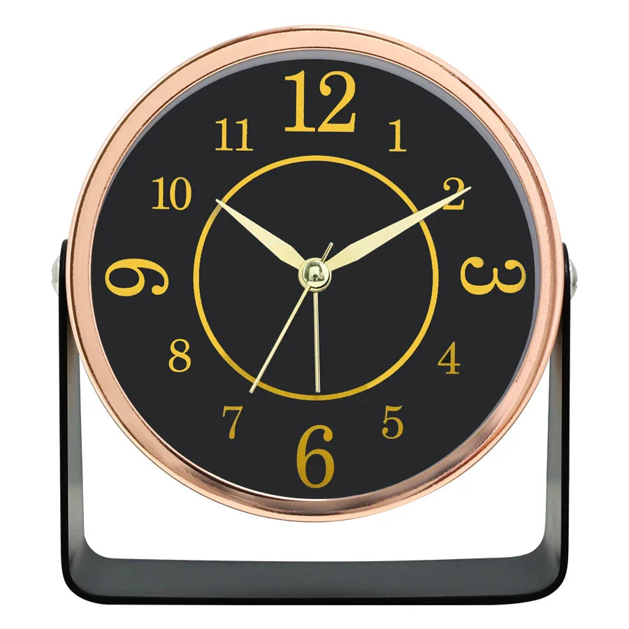 Förvandla ditt sovrum med denna stilfulla och praktiska batteridriven design väckarklocka för sovrum. Med sin eleganta kopparfärgade ram och djupsvarta urtavla, prydd med tydliga gyllene siffror, är denna klocka mer än bara en tidsvisare – den är en inredningsdetalj som lyfter rummet. Den tysta mekanismen säkerställer en ostörd natts sömn, medan den batteridrivna designen ger dig friheten att placera den var som helst utan att behöva tänka på sladdar. Vakna upp utvilad och med stil varje morgon.