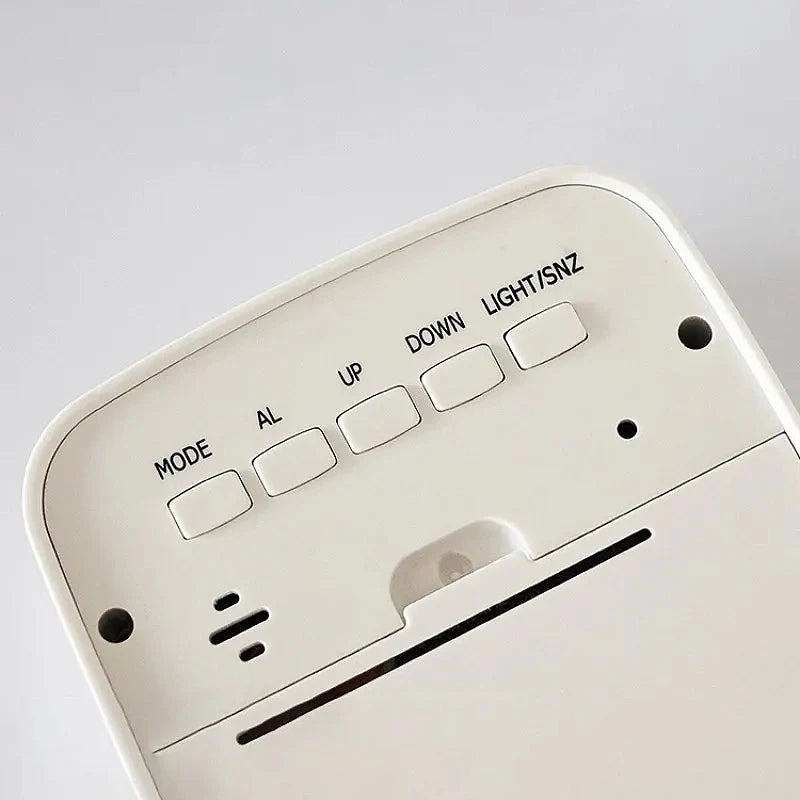 Föreställ dig att vakna upp till en fridfull morgon, där det första du ser är en klart läsbar display med mjukt sken. Vår väckarklocka är mer än bara en tidsmätare; den är en smart följeslagare som förbättrar din sömnmiljö. Med temperatur- och luftfuktighetsmätningar kan du hålla koll på ditt inomhusklimat och skapa en optimal miljö för en god natts sömn. Dessutom ser den stilrena vita designen till att den blir en diskret och smakfull detalj på ditt nattduksbord.