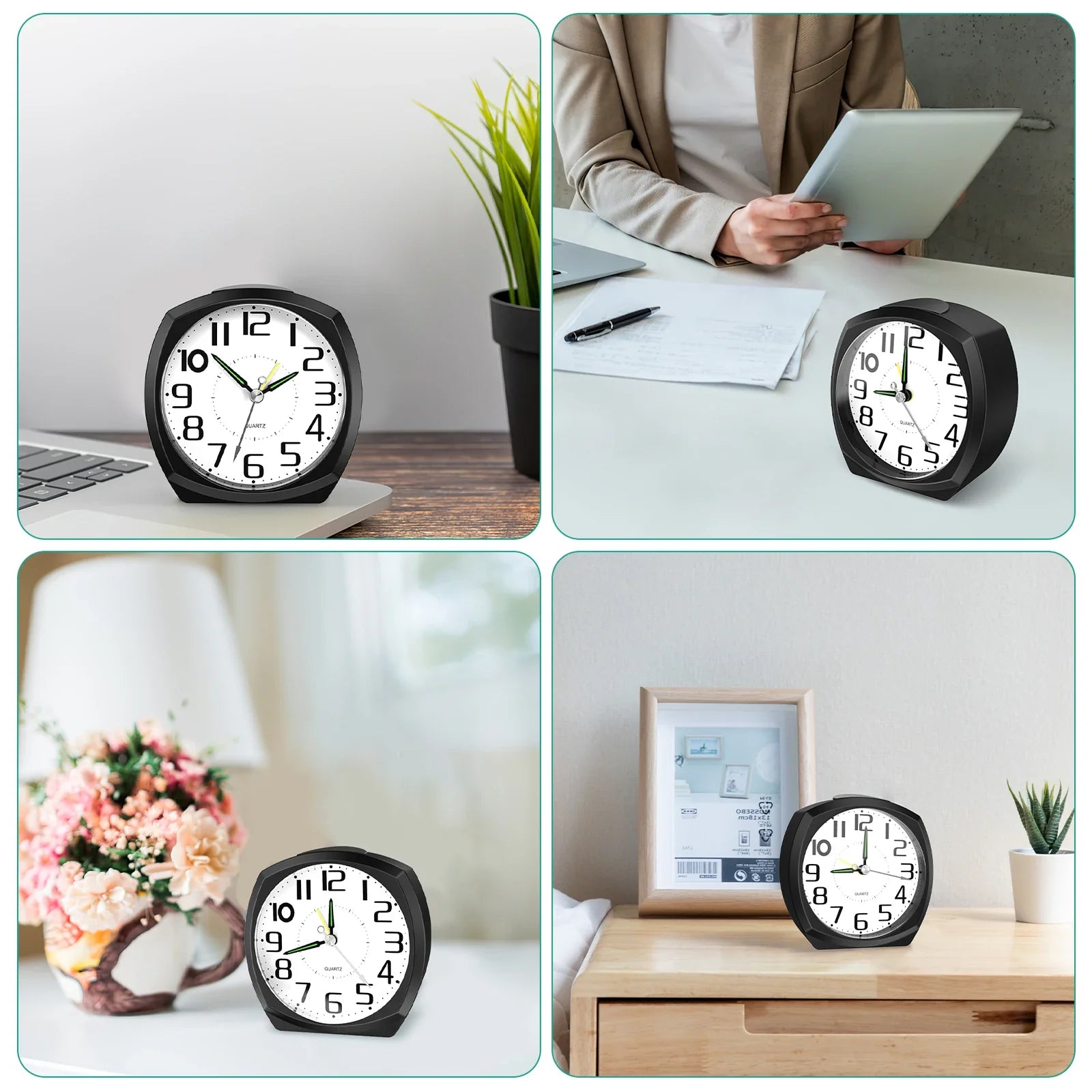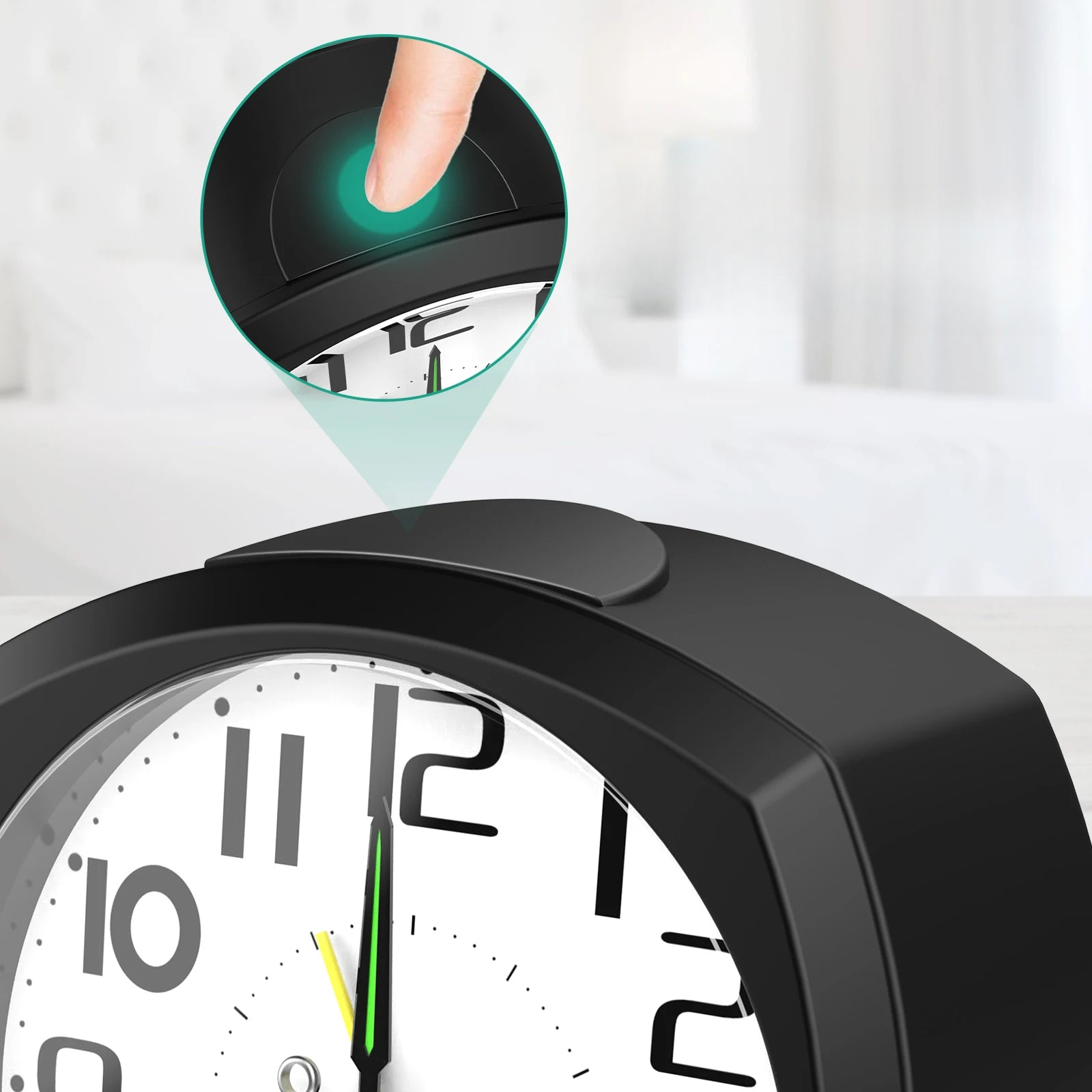 Upplev elegans och funktionalitet med vår Enkel och tyst analog väckarklocka. Designad för att göra ditt uppvaknande trevligare och börja dagen med stil, kombinerar den raffinerad design med praktisk användbarhet.