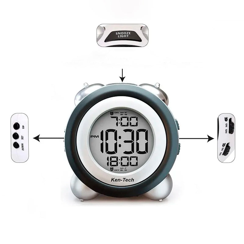 - Tydlig digital display: En stor, bakgrundsbelyst skärm visar tiden och dina alarmtyper (M-F, S-S) tydligt, även i mörkret.