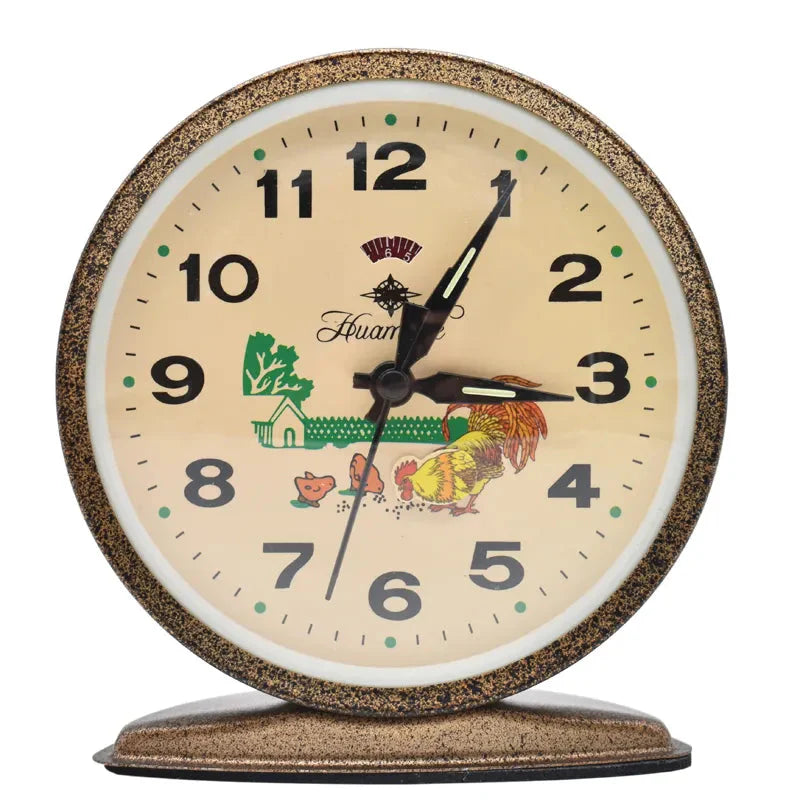 Trött på att vakna med en tråkig digital alarmklocka? Ge ditt sovrum en charmig uppgradering med denna underbara gammaldags runda väckarklocka i retrostil! Dess unika design, med en lantlig scen som inkluderar en hus, träd och en ståtlig tupp omgiven av små kycklingar, kommer garanterat att ge dig ett leende på läpparna varje morgon. Denna klocka är inte bara en tidsvisare, utan också ett fantastiskt dekorativt inslag som tar dig tillbaka till en enklare tid.