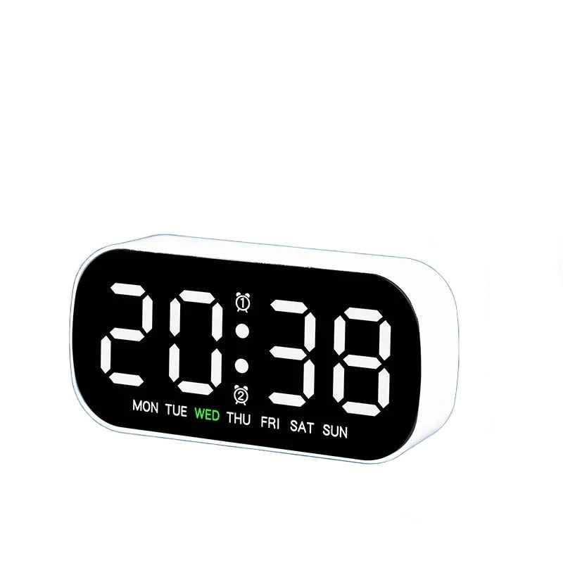 Trött på att vakna stressad och förvirrad? Med vår liten digital väckarklocka för sängbordet får du en lugn start på dagen. Denna smarta klocka visar tydligt tiden med sina stora, lättlästa siffror, även mitt i natten. Du ser direkt att klockan är 20:38 och att det är onsdag, så du vet vilken dag det är och kan planera din kväll eller morgon med precision. Glöm krångliga inställningar och irriterande tickande – den här väckarklockan är designad för enkelhet och funktionalitet, perfekt för att smälta in på ditt sängbord utan att ta för mycket plats.