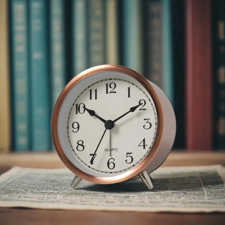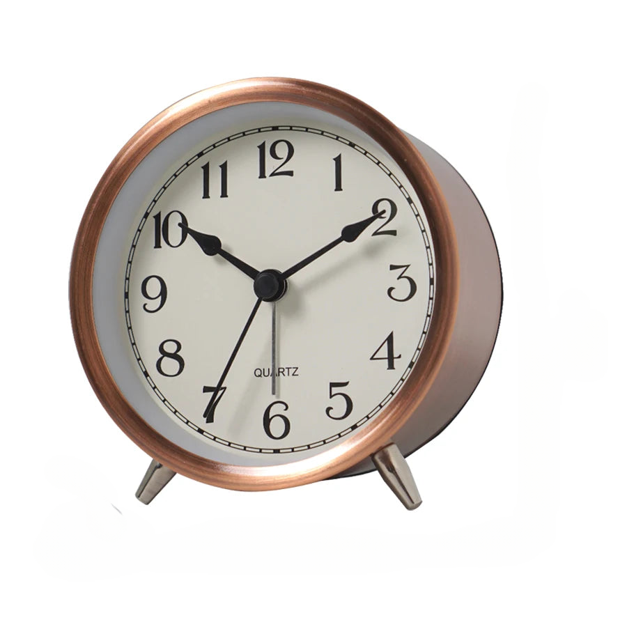 Trött på högljudda väckarklockor som rycker dig ur sömnen? Vår liten tyst väckarklocka med visare är den perfekta lösningen för dig som vill vakna lugnt och behagligt. Den diskreta designen i kopparfinish smälter in elegant i alla sovrumsinredningar, vare sig det är på nattduksbordet eller på en hylla. Njut av tystnaden under natten tack vare den visarlösa rörelsen, och vakna upp fräsch och utvilad, redo att möta dagen.