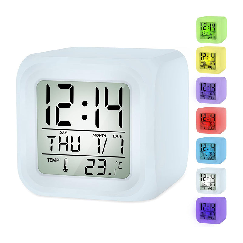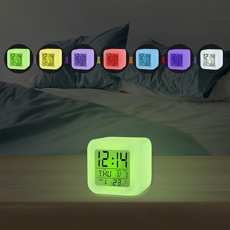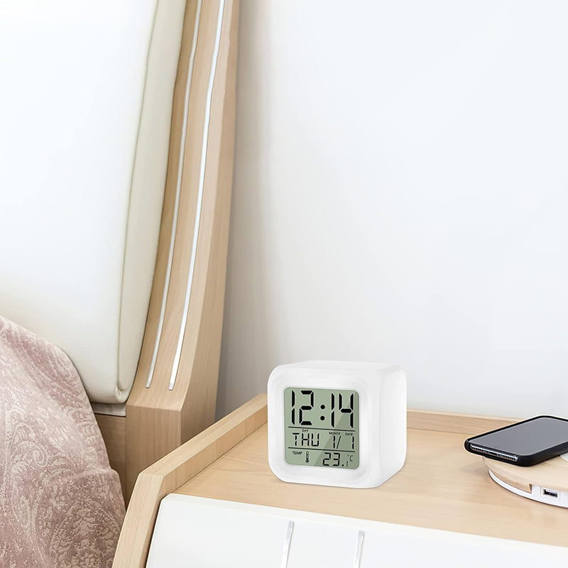 En av de mest älskade egenskaperna hos vår Lysande kub väckarklocka med termometer är dess förmåga att ändra färg. Du kan välja mellan sju olika, mjuka färger som skapar en lugnande atmosfär i ditt rum. Kanske vill du ha ett svalt blått ljus på måndagsmorgonen och ett varmt orange på helgen? Möjligheterna är oändliga. Den inbyggda termometern ser till att du alltid vet hur varmt det är i rummet, så att du kan klä dig rätt för dagen redan innan du kliver upp ur sängen. Det är den perfekta kombinationen av praktikalitet och personlig stil.