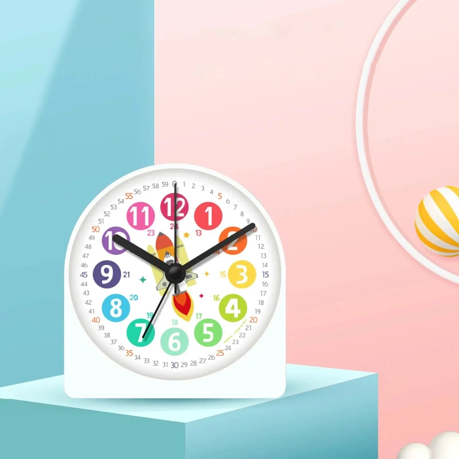 Vi vet att tydlighet är nyckeln när det gäller att lära sig klockan. Därför har vår pedagogiska väckarklocka med rymdraket pojkar en design som gör det superenkelt för barn att läsa av tiden. De stora, färgglada siffrorna för timmarna är lätta att urskilja, och de mindre siffrorna längs ytterkanten hjälper till att visualisera minuterna. Mitt på urtavlan, redo att skjuta iväg, sitter en cool rymdraket som inspirerar till drömmar om galaxer långt, långt borta. Denna klocka är mer än bara en tidsvisare; den är en guide till förståelse och självständighet för din lilla upptäcktsresande.