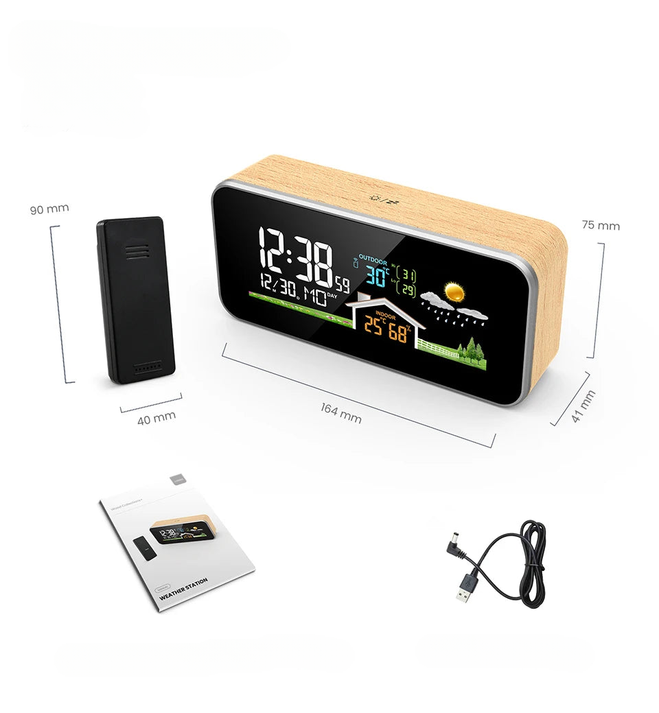Trött på att vakna till en vanlig, tråkig väckarklocka? Med vår Smart väckarklocka med digital väderstation får du så mycket mer än bara tiden! Den här smarta klockan är designad för att göra din morgon smidigare och din dag mer informerad. Föreställ dig att vakna upp och direkt kunna se utomhustemperaturen, väderprognosen och till och med inomhustemperaturen, allt på en tydlig och lättläst skärm. Den stilrena designen med träfinish smälter perfekt in i alla sovrum och bidrar till en lugn atmosestär. Det är inte bara en klocka, det är din personliga morgonassistent!