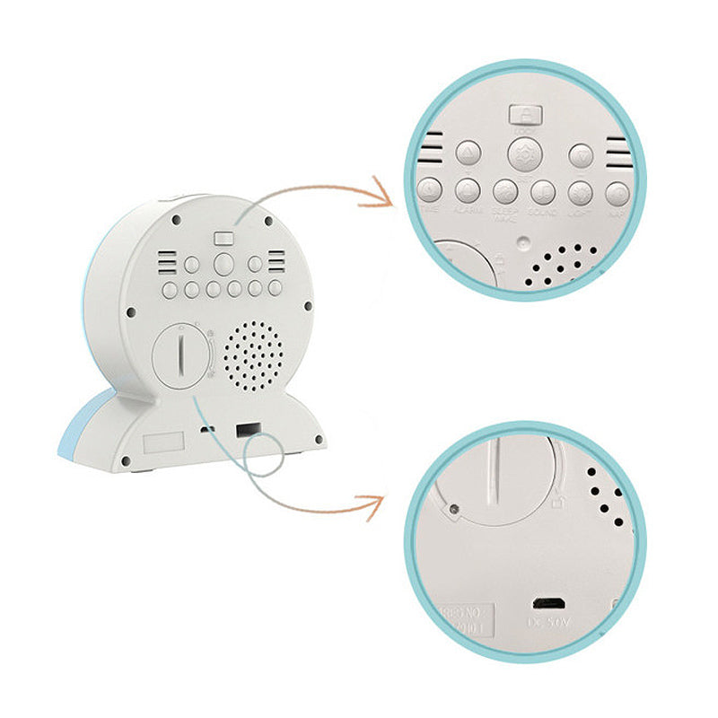 - Anpassningsbara alarm: Ställ in flera alarm för både natt och dagvila för att matcha ditt barns unika rutiner.
