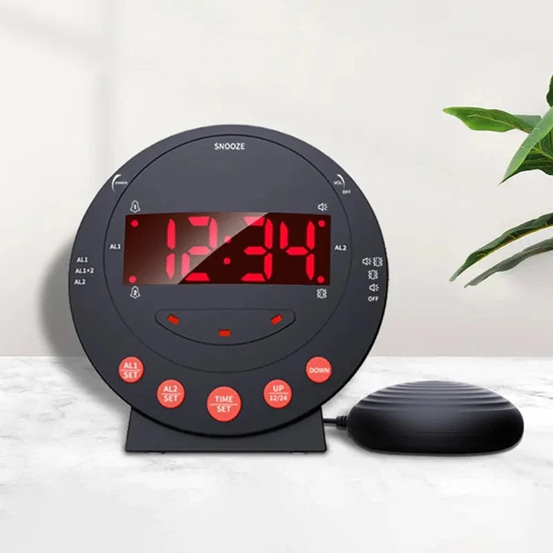 Vakna upp med vår Svart väckarklocka med stark sängvibrator