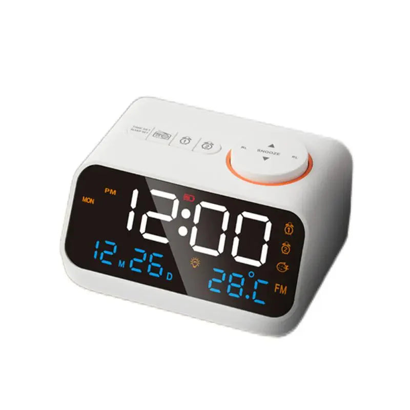 Upplev elegans och funktionalitet med vår Uppladdningsbar digital klockradio med display. Designad för att göra ditt uppvaknande trevligare och börja dagen med stil, kombinerar den raffinerad design med praktisk användbarhet.