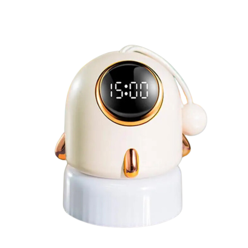 Vår väckarklocka för barn i form av raket är mer än bara ett sött ansikte. Den är utrustad med en tydlig digital display som gör det enkelt för barn att läsa av tiden, även i mörkret. Den intuitiva designen gör den enkel att ställa in, så att även de minsta kan vara med och bestämma när det är dags att vakna. Den lilla remmen med bollen gör den lätt att flytta runt eller hänga upp, vilket ger flexibilitet i placeringen. Den är byggd för att vara hållbar och tåla barns lekfulla hantering, så du kan lita på att den kommer att följa med på många äventyr.