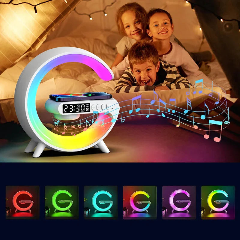 Trött på att ha flera prylar på nattduksbordet? Vi har lösningen! Denna smarta väckarklocka med trådlös laddare och lampa kombinerar tre viktiga funktioner i en snygg och modern design. Föreställ dig att vakna upp till ett mjukt ljus, med din telefon fulladdad och redo för dagen, allt från en enda enhet som dessutom ser fantastisk ut. Den färgglada LED-belysningen skapar en härlig atmosfär, perfekt för att både somna och vakna till. Den är inte bara praktisk, utan också en stilfull inredningsdetalj som lyfter vilket rum som helst.
