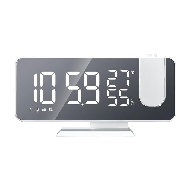 Trött på att famla efter telefonen i mörkret för att kolla tiden? Med vår vita klockradio med projektor för tak blir det ett minne blott! Denna snygga och moderna klockradio är designad för att göra dina morgnar lite enklare och dina nätter lite mer avkopplande. Den integrerade projektorn visar tiden tydligt på ditt tak eller din vägg, så du kan se den utan att ens behöva vända på huvudet. Dessutom håller den dig uppdaterad om temperaturen och luftfuktigheten i rummet, allt presenterat på en elegant spegelyta. En perfekt blandning av funktionalitet och stil för ditt sovrum.